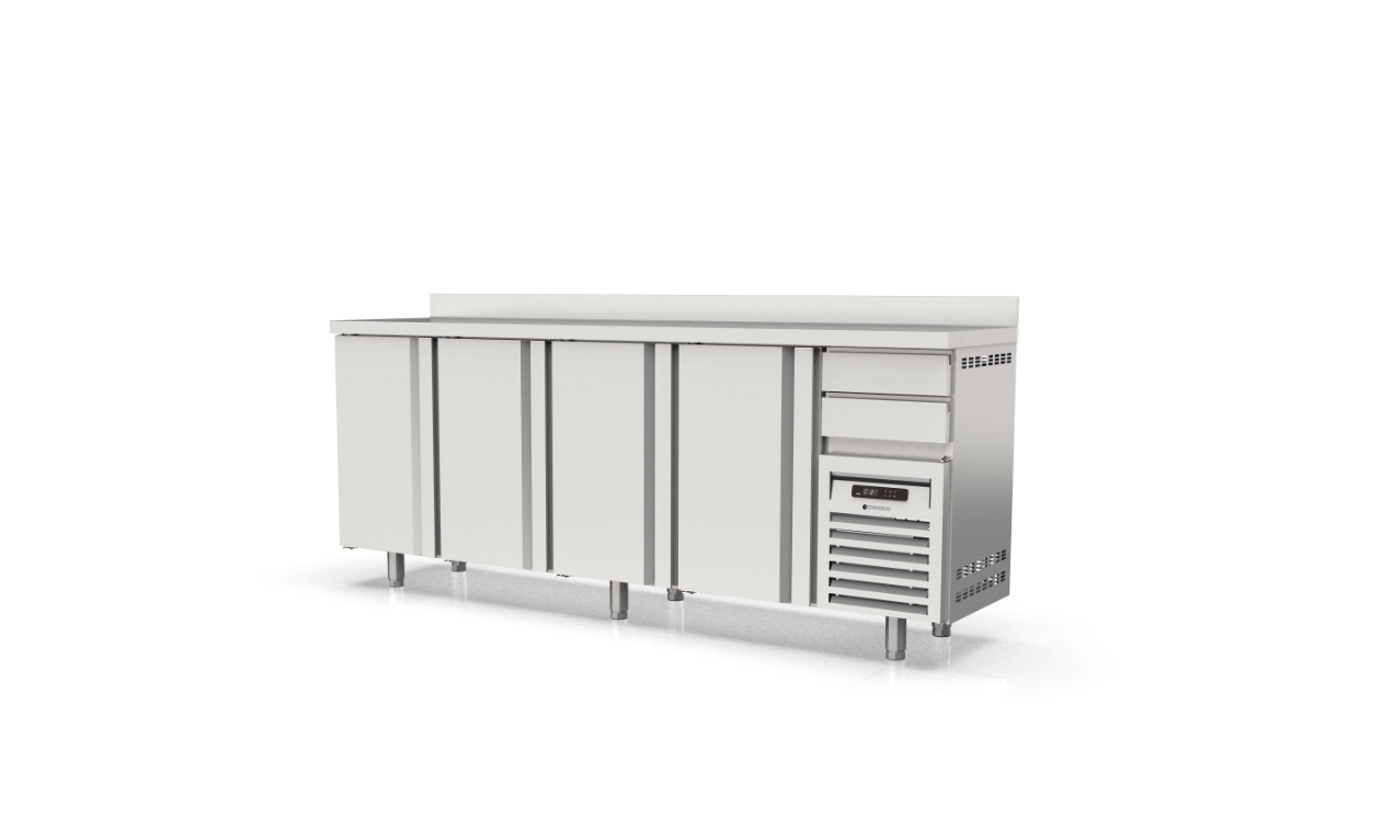 - AISI-304 stainless steel worktop, with 90° front and 100 mm sanitary upstand (optional without
