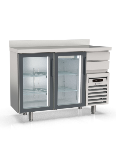 - AISI-304 stainless steel worktop, with 90° front and 100 mm sanitary upstand (optional without