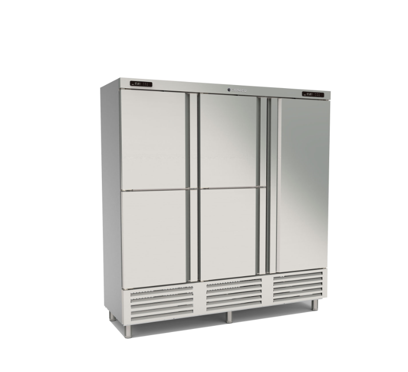 - Puertas con sistema de cierre automático y burlete magnético (permanece abierta al superar los 90° de apertura)