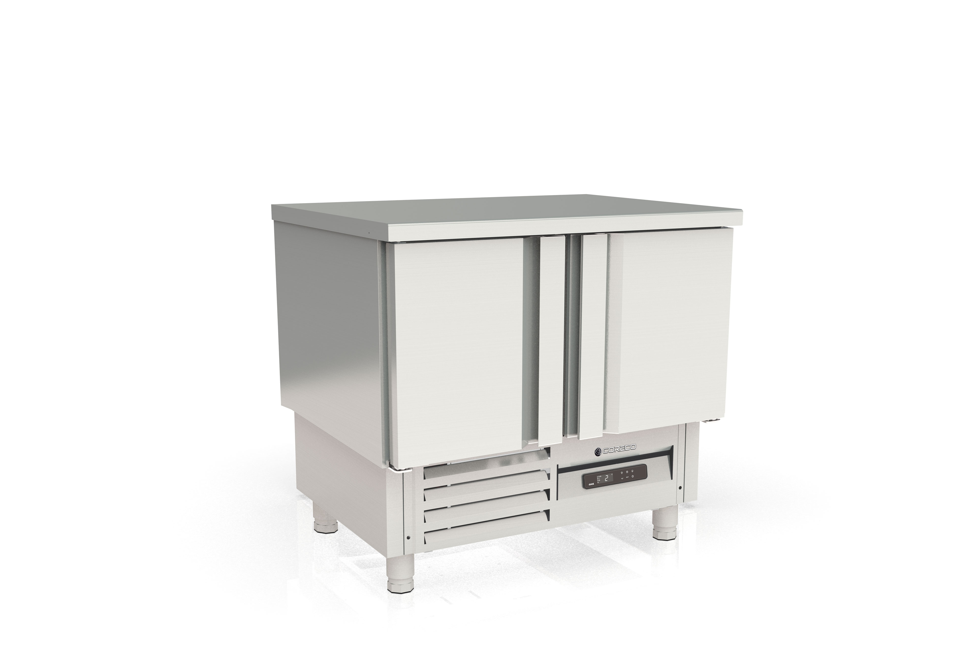 - Encimera de acero inox AISI-304 con frente recto (opcional con peto sanitario 100