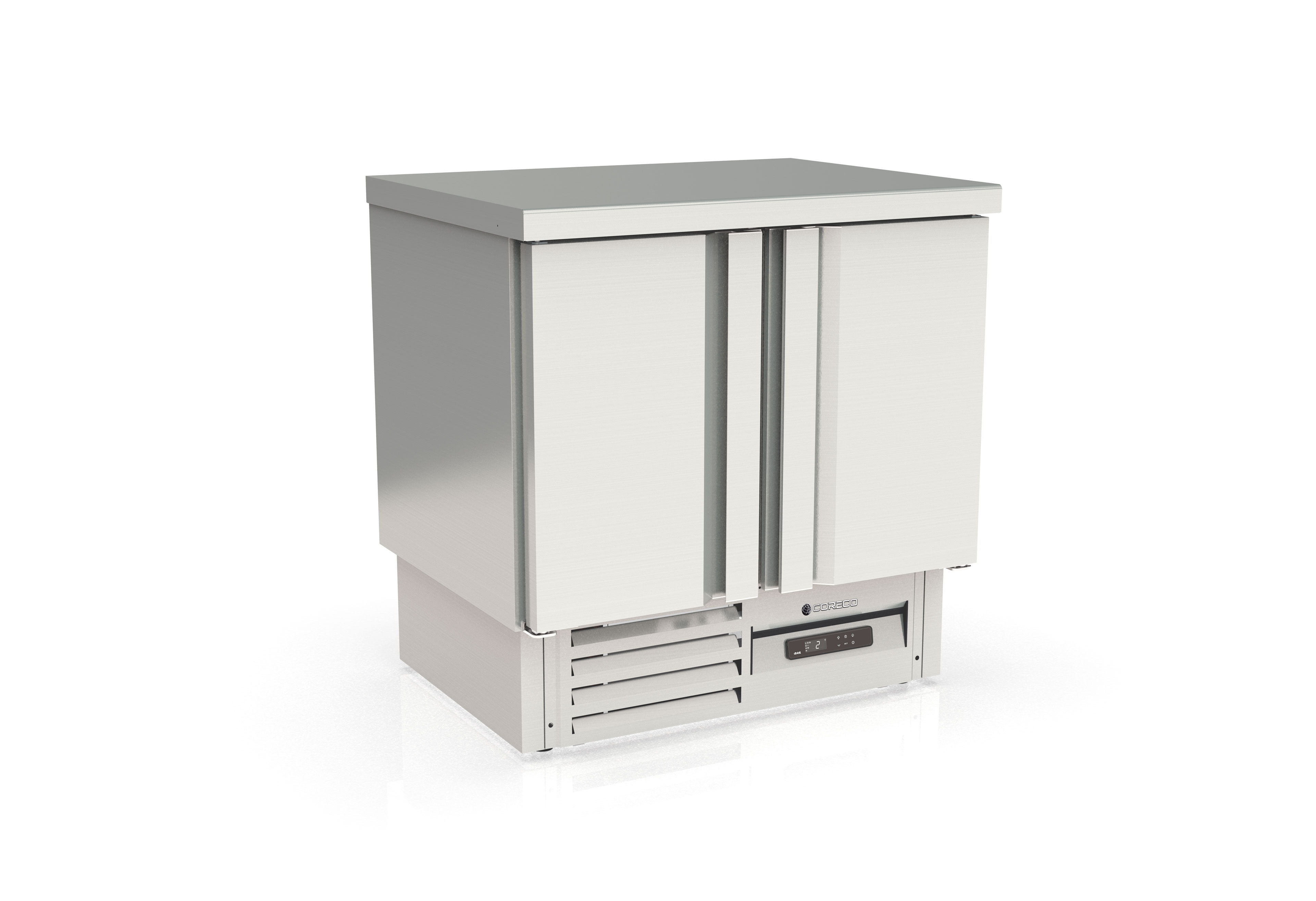 - Encimera de acero inox AISI-304 con frente recto (opcional con peto sanitario 100