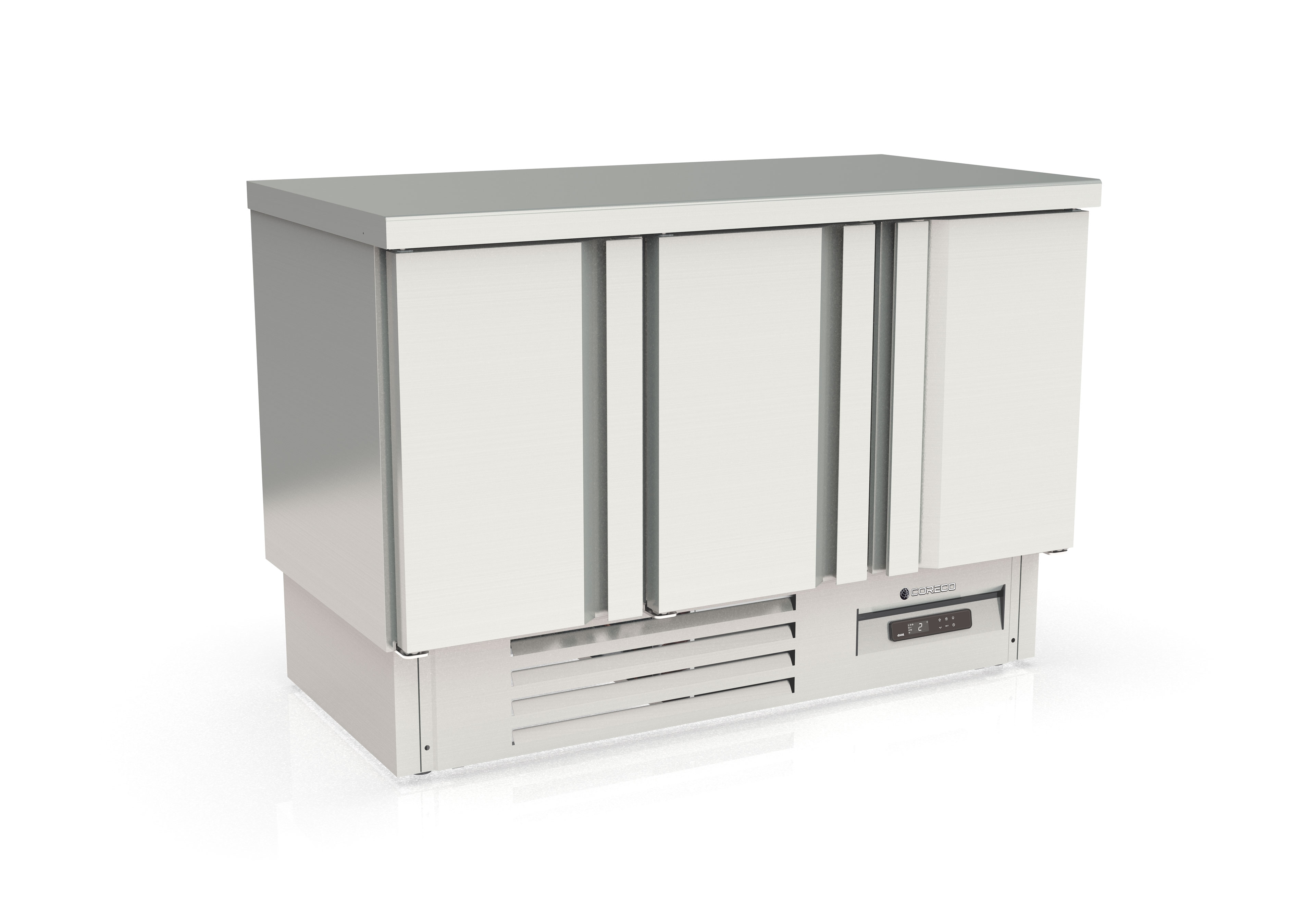 - Encimera de acero inox AISI-304 con frente recto (opcional con peto sanitario 100